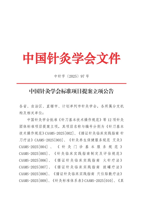 中国针灸学会标准制修订工作平台登录《针刀基本技术操作规范》等12项团标项目提案立项公告