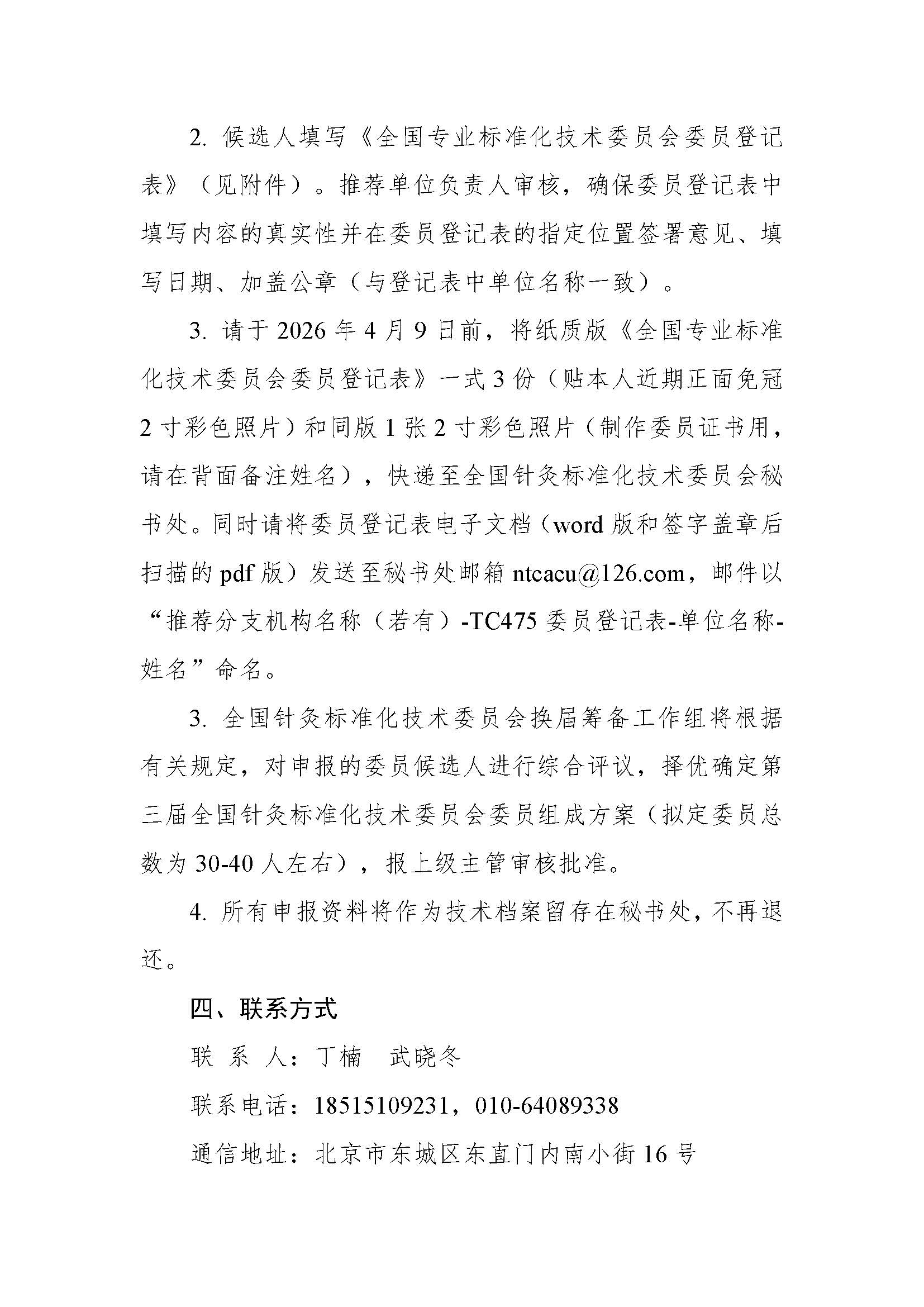 关于全国针灸标准化技术委员会换届及征集委员的通知